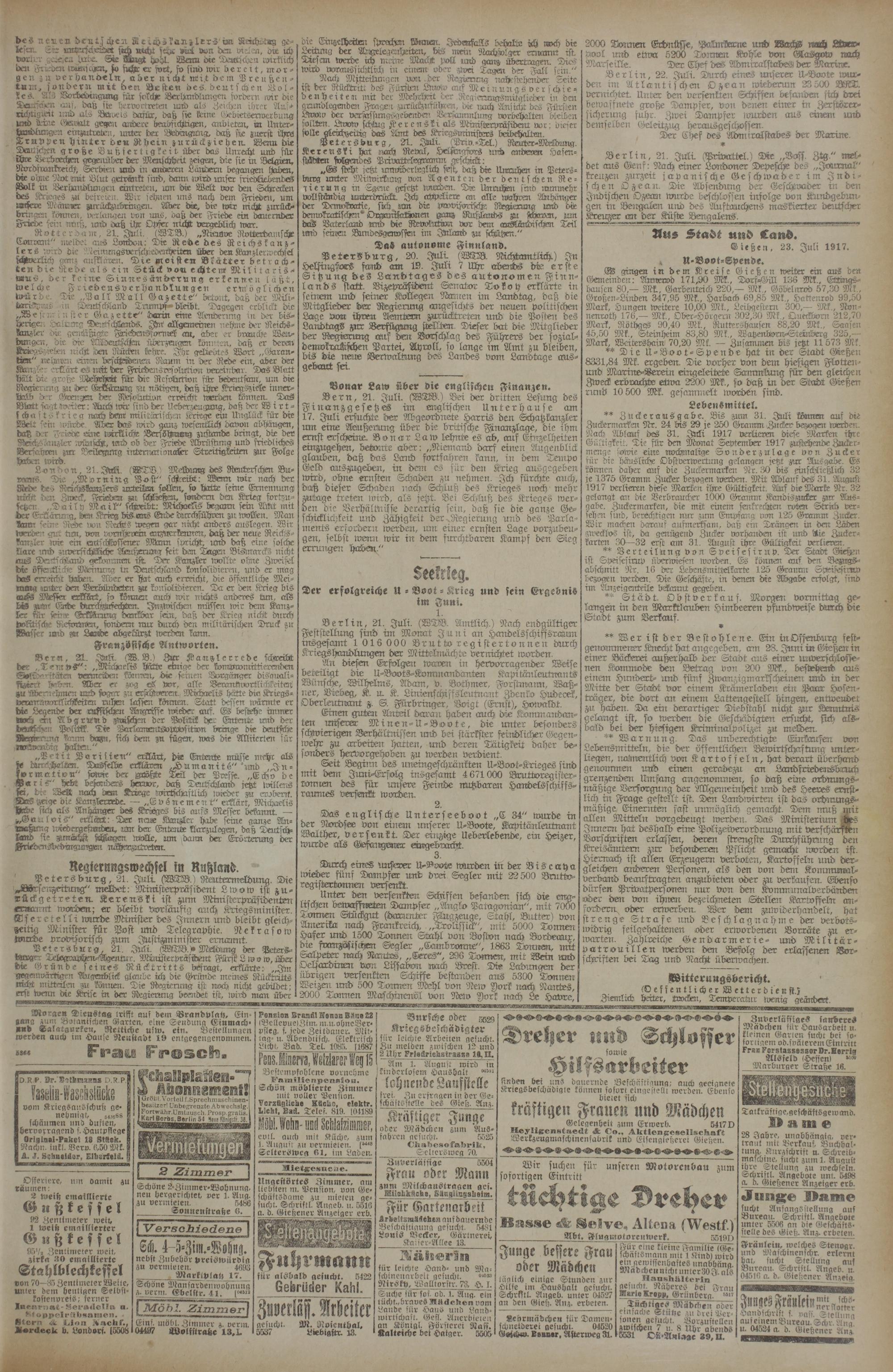Petersburg, 21. Juli. (WTB.! Reutermeldung. .Die ^BKrseuFertu^ meldet: Mtiristerpräsident Lwow ist zurückgetreten. Kerenski ist zum MänisterpräsidentLn tsemmtt worden; er bleibt vorläufig auch Kriegsminister. Tseretelli wurde Minister des Innern und bleibt gleichseitig Minister für Post und Telegraphie. Nekrasow Wurde provisorisch zum JustMninister ernannt.