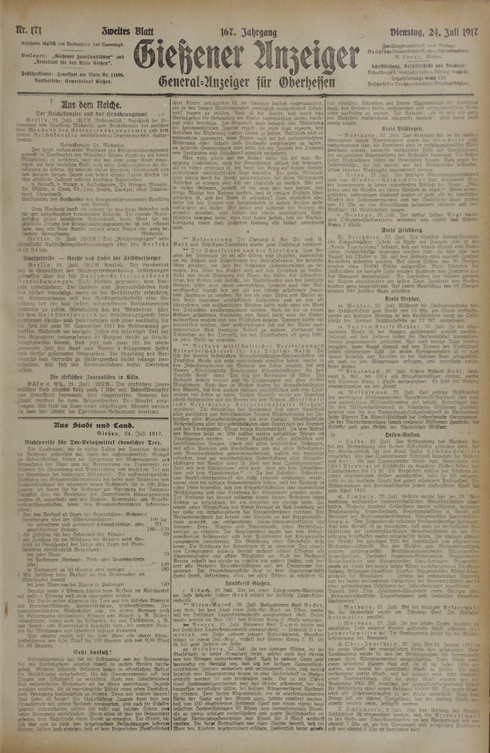Beilagen: ..«ieftener Zamilienblättett' und „Kreisblatt für den Urei; Gießen".