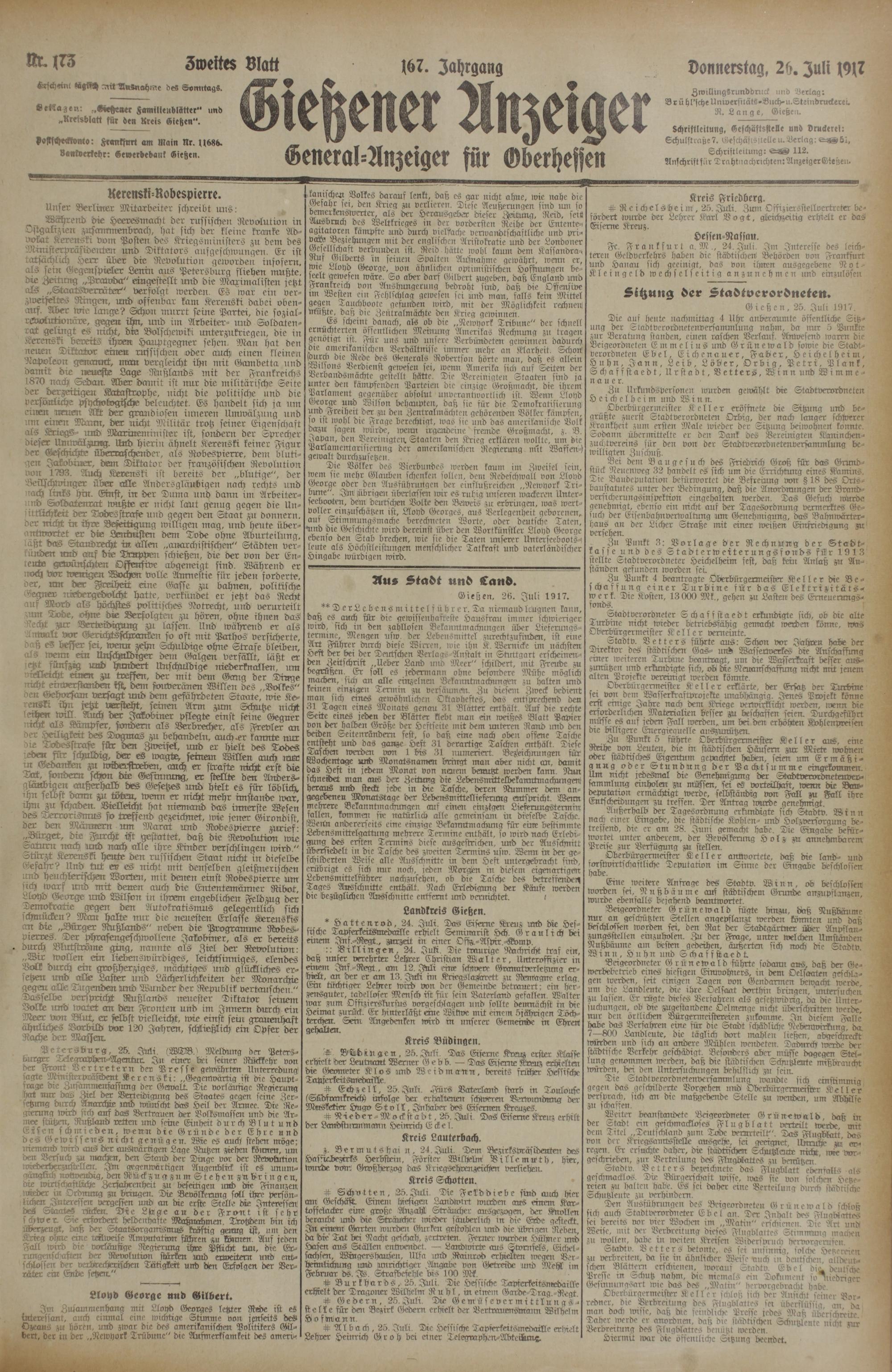Gießen. 26. Juli 1917.