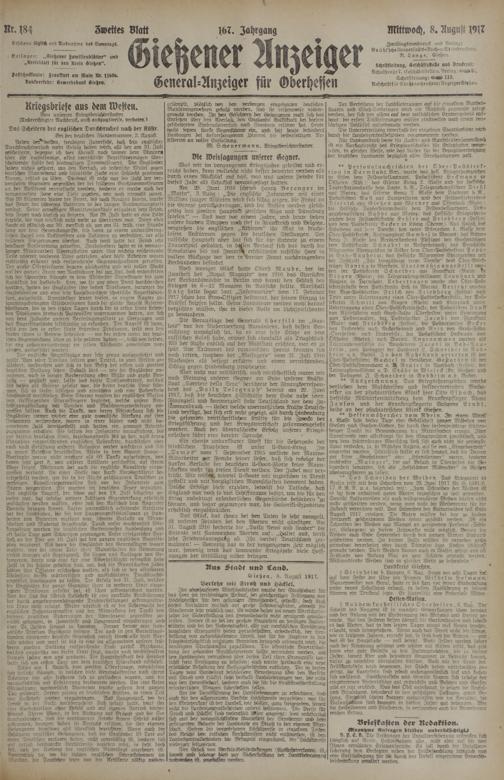 Sei lagen: „Giehrner ZamilienblStter^' und „Krcisblatt für den Kreis Giehen".