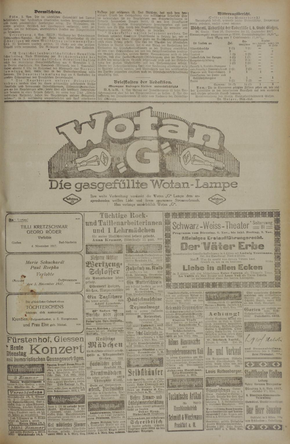 DienStaa d. 6. Rov. 1917, abends 7V> Uhr,
