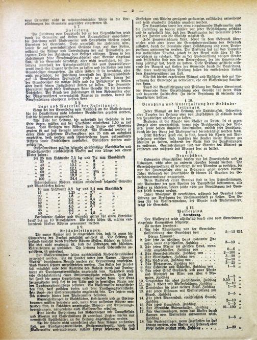 Jeder Mangel an der Leitting, wie Undichtigkeit, Schlveißen oder Tropsen der Leitung oder von Zapfhähnen ist alsbald durch den Hausbesitzer abstellen zu lassen.