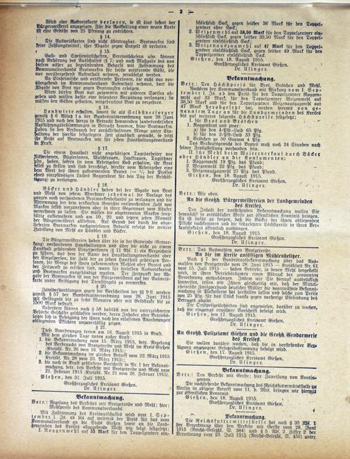 Sie wollen darüber wachen, daß die in vorstehender Vcv« fügnng angezogcne Gesetzesbestimmung befolgt wird G i e ß e n , den 17. August 1915.