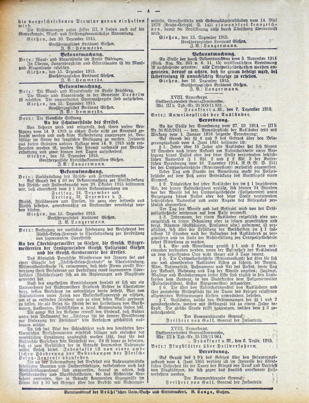 An Stelle der durch Bekanntmachung vom 5. November 1914 (Gieß. Anz. Nr. 261 v. 6. 11. 15) veröffentlichten Verordnung :st nachstehende getreten: alle Orispolizeibehorüen werden an