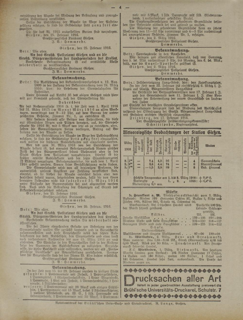 Gießen, den 2. März 1916.