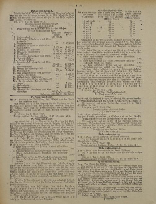 Wir iveifen S^e aus die in Nr!. 74 des Gießener Anzeigers! erschienene Bekanntmachung des Bezirkskommandos Gießen mit dem Aufträge hin, diese in ortsüblicher WÄse zu veröffentlichen. G i e ß e n, den 1. April 1916.