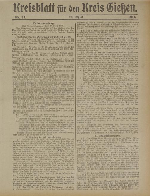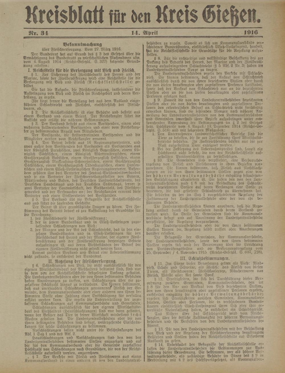 über Fleischversorgung. Vom 27. März 1916.