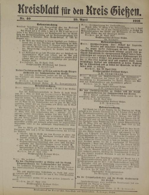 6) t c ß e n , beit 28. April 1916 Großherzoglichcs Kreisamt Gieße.t. I. B.: Hem werde.