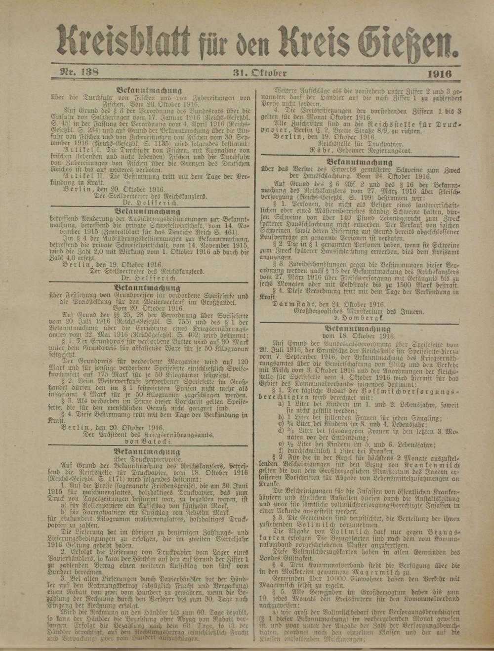 Berlin, den 20. Oktober 1916.