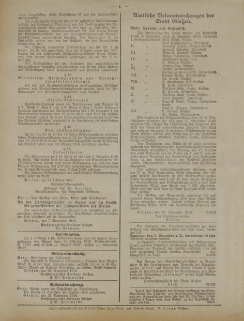 Die Seuche ist erloschen; die Sperre ,oird aufgehoben. Gießen, den 21. November 1916.