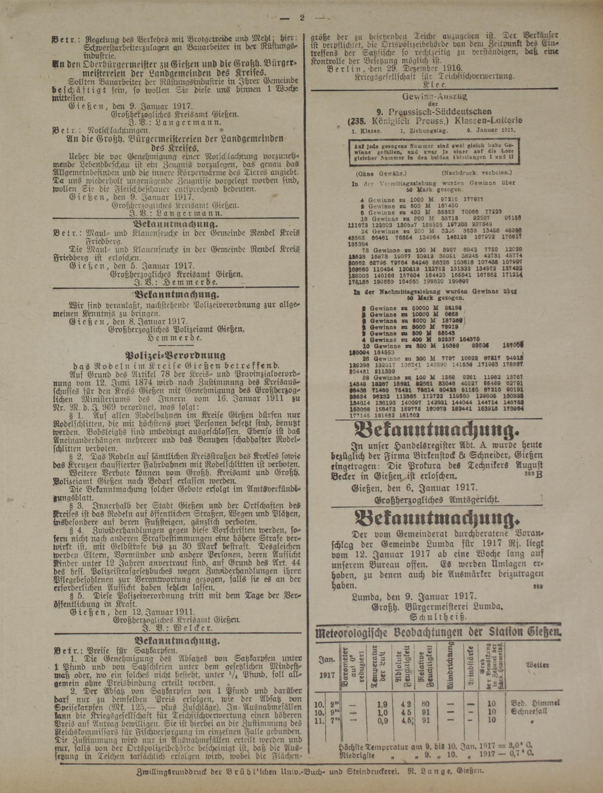 Gießen, den 9. Januar 1917.