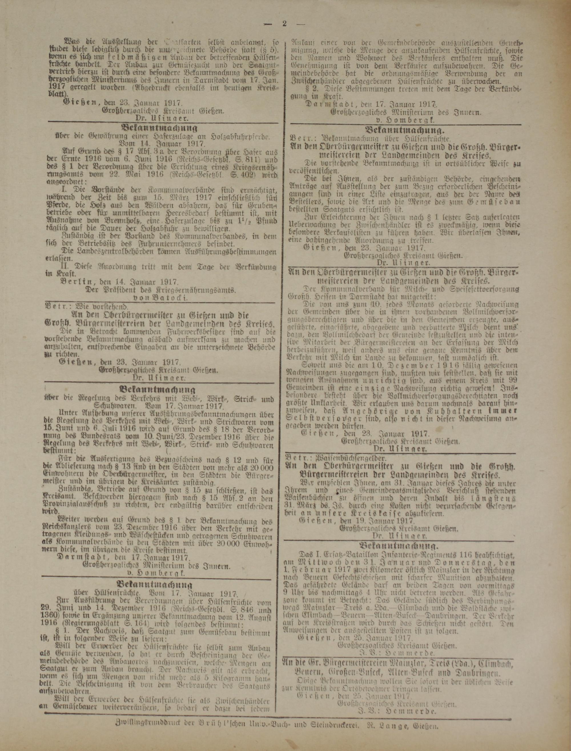 Das I. Ersatz-Bataillvn Infanterie Regiments 116 beabsichtigt, am M i t t w o ch den 31. I an u a r und Donnerstag, den 1. F e ö r u a v 1917 z»vei Kilometer östlich Mainzlar in der Richtung nach Beuern Gefechtsschießen mit scharfer Munition abzubalten. Das gefährdete Gelände darf an beiden Tagen von vormittags 9 Uhr bis nachmittags 1 Uhr nicht betreten weichen. Als Gefi-.tzr zoue kommt in Betracht: Das Gelände südlich des Verbind»».;•> wegS Mainzlar—Treis a. Lda. Climbach und die Waldsläcke >wi scheu Climbach -Beilern Alten Buseck Danbringen. Der Verkehr auf den Kreisstraßen lvird durch das Schießen nickt gestört. Den Antveisungen der ausgestellten Posten ist zu folgen.