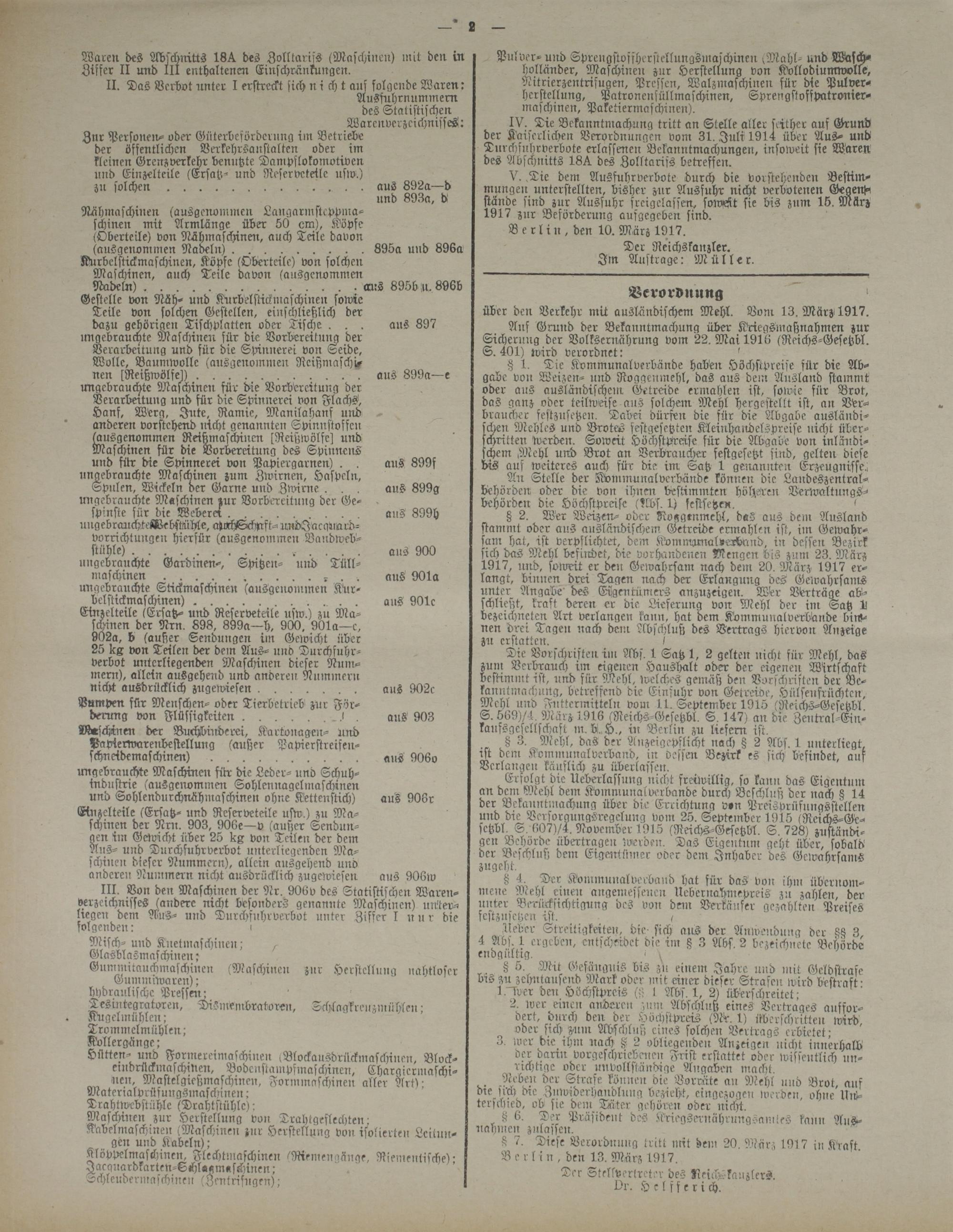 8 7. Diese Verordnung tritt mit dein 20. März 1917 in Kraft Bcrli n, den 13. Mä:^ 1917.