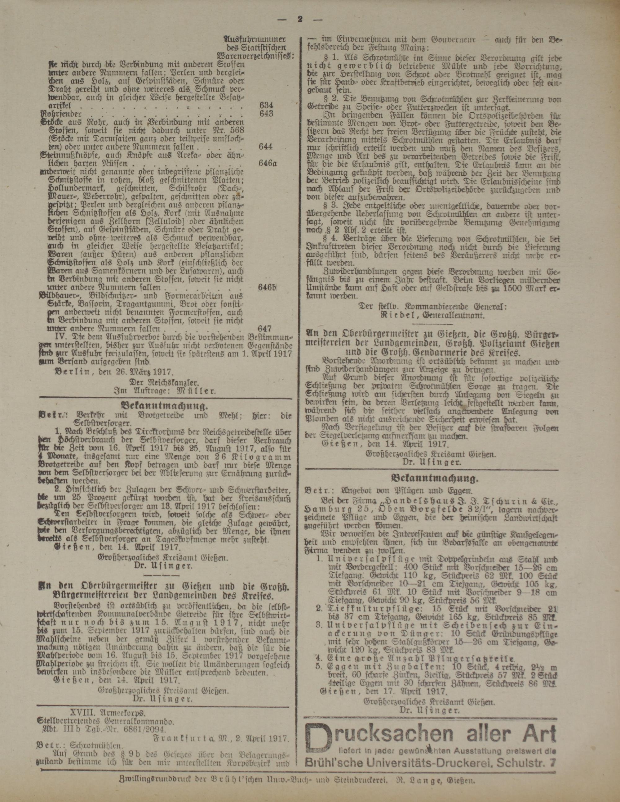 Gießen, den 17. April 1917.