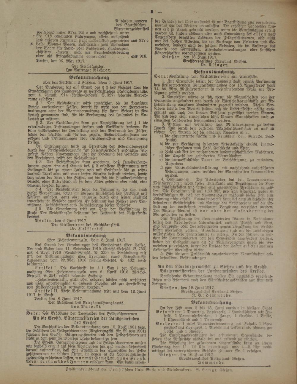 Gießen, den 16. Juni 1917.
