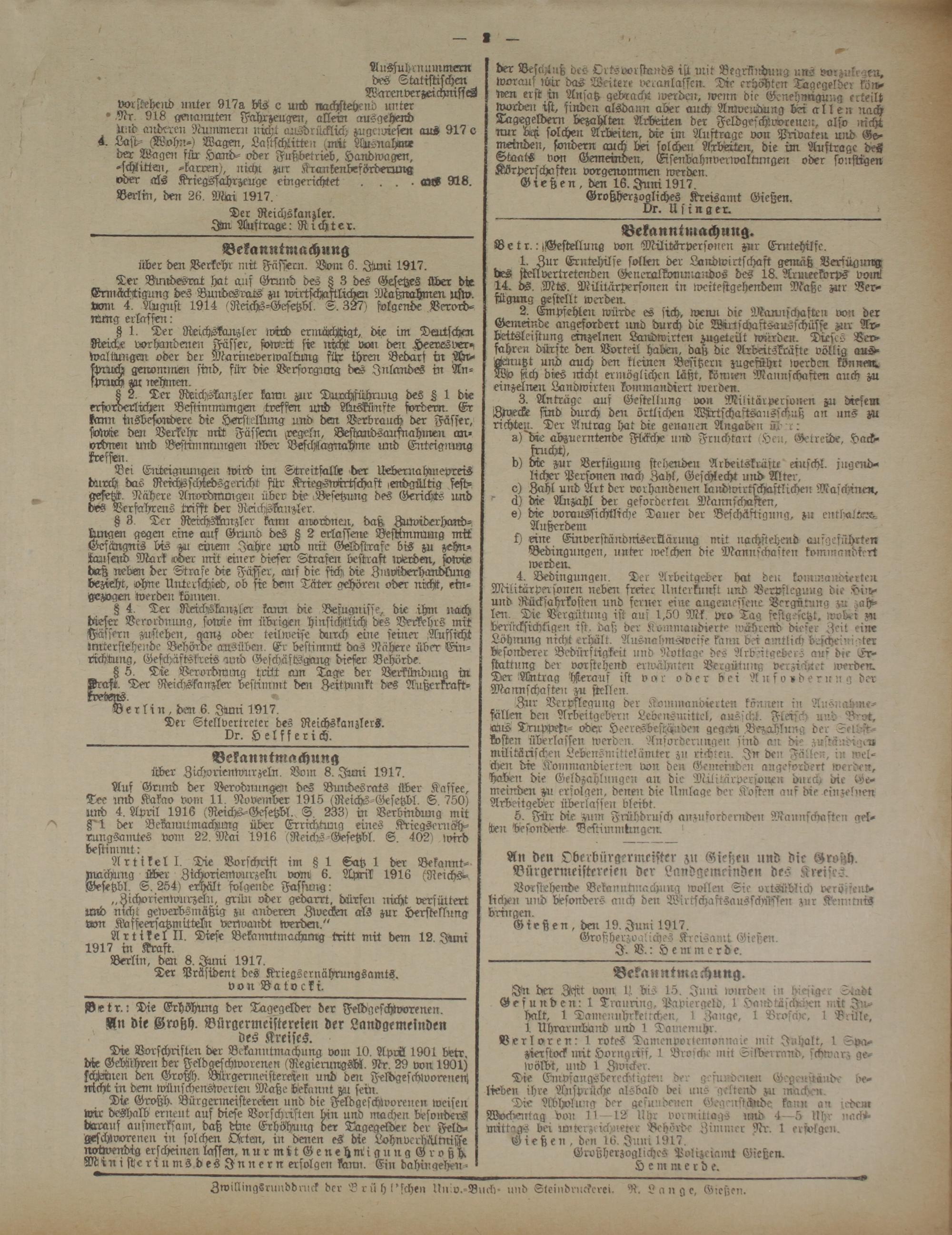 Gießen, den 16.Juni 1917.