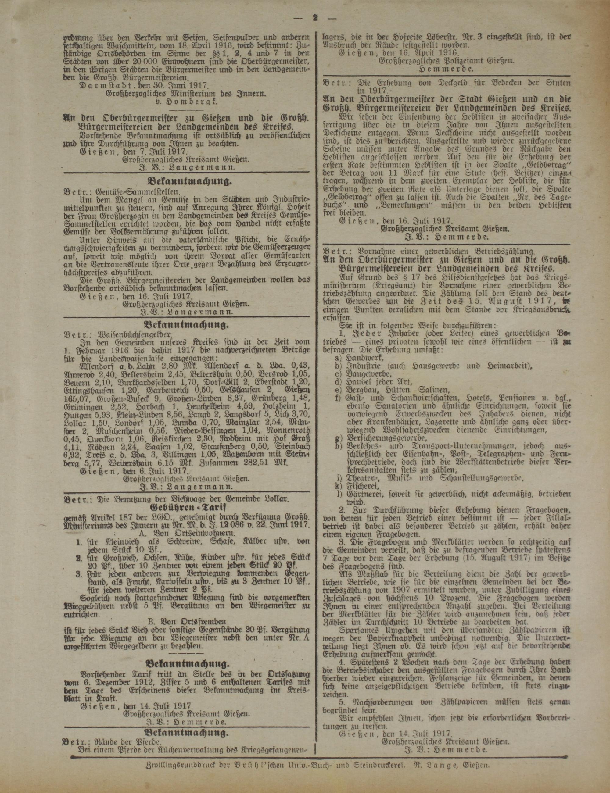 Gießen, den 16. Juli 1917.