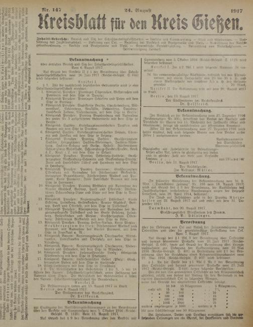 Die Bestimmungen, treten am 15. August 1917 in Kraft.