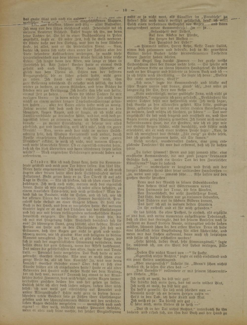 „Du lieber Himmel! Wenn uns jetzt jemand sähe: eine ernsthafte kommandense, die mit zwei jungen Leutnants Gedichte liest... »velch ein idealer Ton bei den Zlvielitscher Kürassieren!" sagte sie lachend