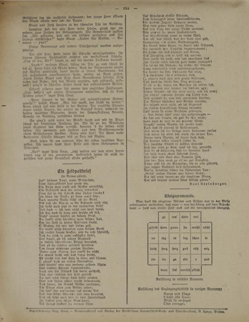 Auflösung deS Ergänzungsrätsels in voriger Nummert