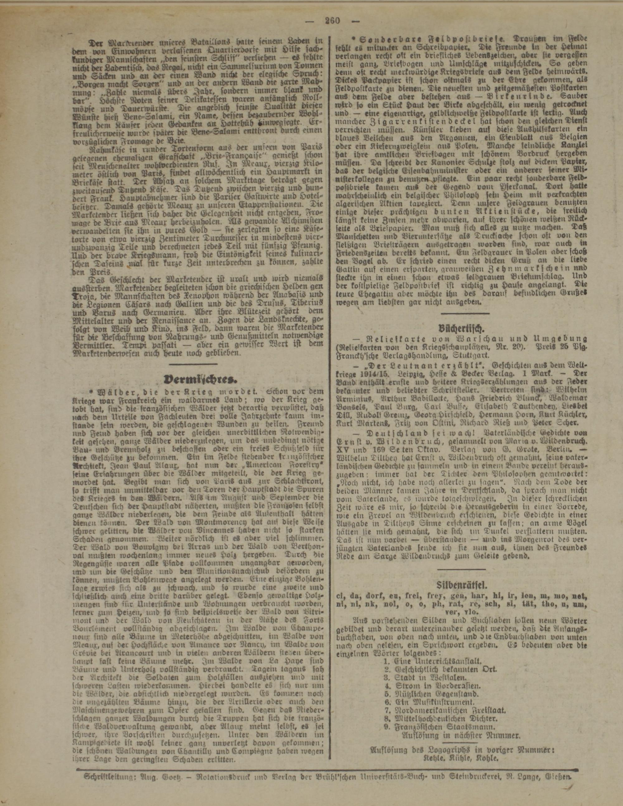 Schrtftleititiig: Aug. Goetz - Rotalion»dr»»ck und Verlag der Brühl'schen UniversitätS-B»»ch- und Steindr»lckerei. R. Lgnge, Gießen.