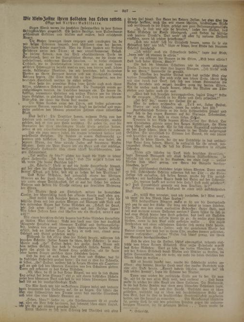 ^^^ssen^r deutsck-eSoldat und das welsche Kind eine tapfere Freundschaft. Sie wich nicht von seiner Seite, schritt stoä lfjT V bn§ ^ von seinen Kameraden die