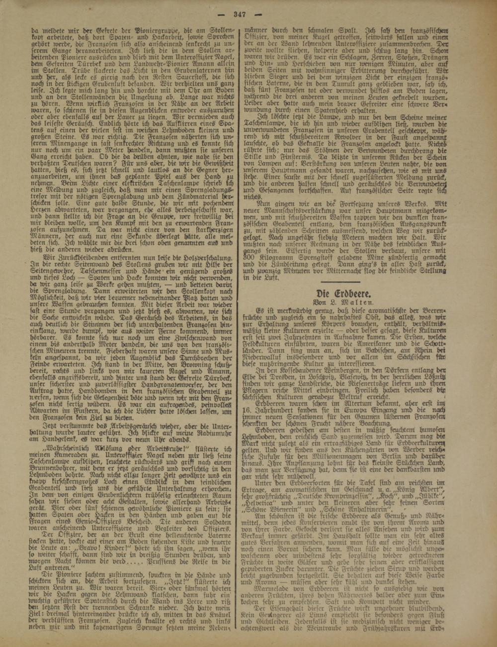 Männer durch den schmalm Spalt. Ich sah dm französischen Offizier, von meiner Kugel getroffen, seitwärts fallen und einen der an der Wand lehnenden Unteroffiziere zusammenbrechm. Dev zweite rvollte fliehen, stolperte aber mrd schug lang hin. Schon waren wir drübm. Es war ein Schlagen, Zerren, Stoßen, Drängen und Hin- und Herschiebm von nur wmigm Minuten, aber auf beiden Seiteil mit wahnsinniger Erbitterung durchgeführt. Wir blieben Sieger und bei dem winzigm Licht der einzigm franzö, stschen Laterne, die in dem Tumult ganz gebliebm war, sah ich, daß fünf Franzosm tot oder verwundet hilflos am Bodm lagm, während die drei anderm von meinm Leutm geknebelt mürben, Leider aber hatte auch mein braver Gefreiter eine schwere Der* wundung durch einen Svatenhieb erhalten.