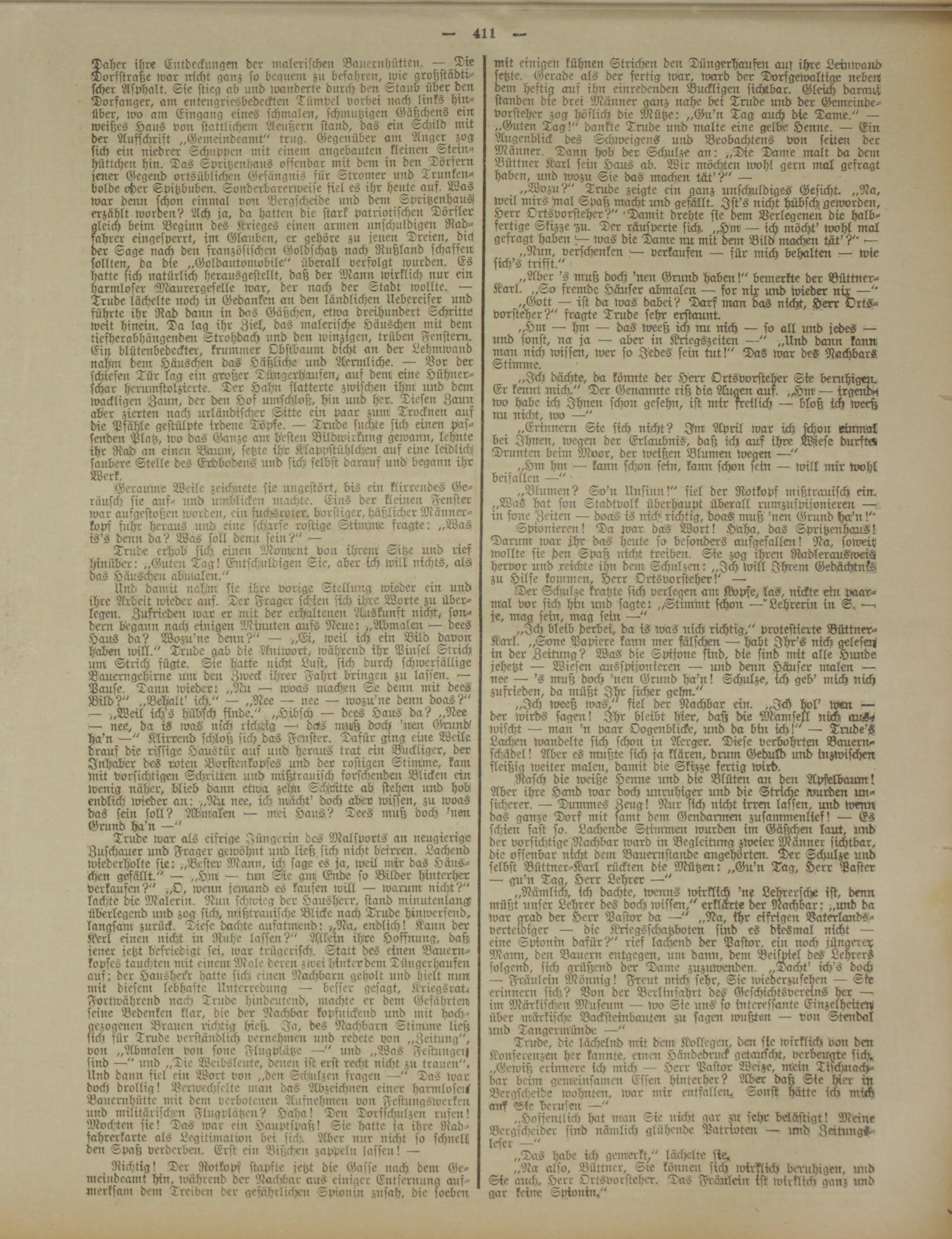 „Na also, Büttner, Sre könne:: sich wirklich) beruhigen, und Sie auch, Herr Ortsvorsteher. Das Frcnücin ist wirklich, ganz und gar keine Spionin,"