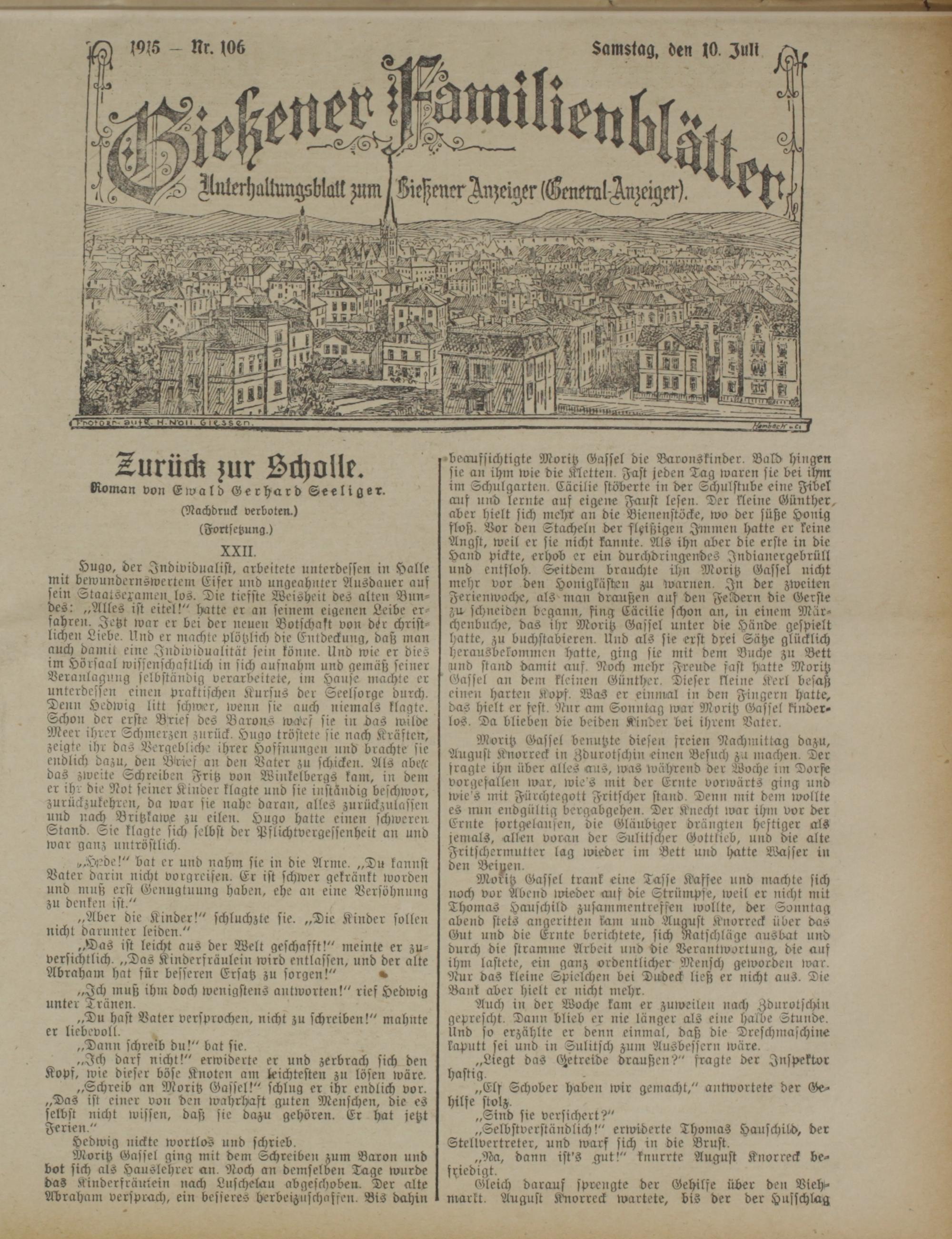 Moritz Gassel benutzte diesen freien Nachmittag dazu, August Knorreck in Zdurotschin einen Besuch zu machen. Der fragte ihn über alles aus, was wäl-rend der Woche im Dorfe vorgefallen war, wie s mit der Ernte vorwärts ging nnd wie's mit Fürchtegott Fritsck)er stand. Denn mit dem wollte es nun endgültig bergabgehen. Der Knecht lvar ihm vor der Ernte fortg-elausen, die Gläubiger drängten heftiger als jemals, allen voran der Sulitscher Gottlieb, und die alte Fritschermutter lag wieder im Bett und l-atte Wasser in den Beinen.