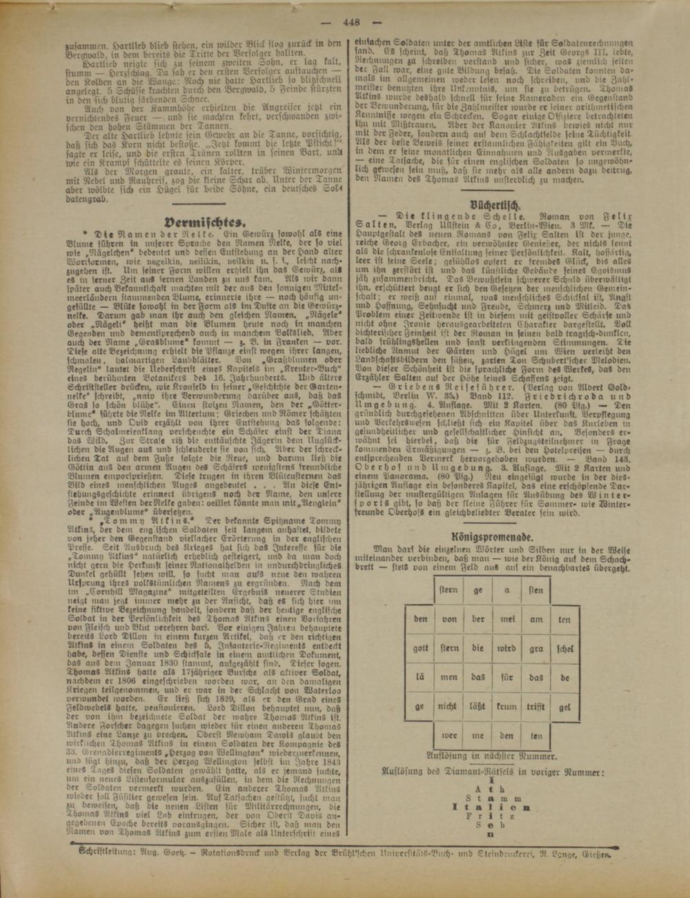 Gchrlftleitnng: A„g. Goetz. - Rotationsdruck und Verlag der Brühl'schen UnirersilälS-Bnch- und Steindruckere», R. Lsnge, Gießen.