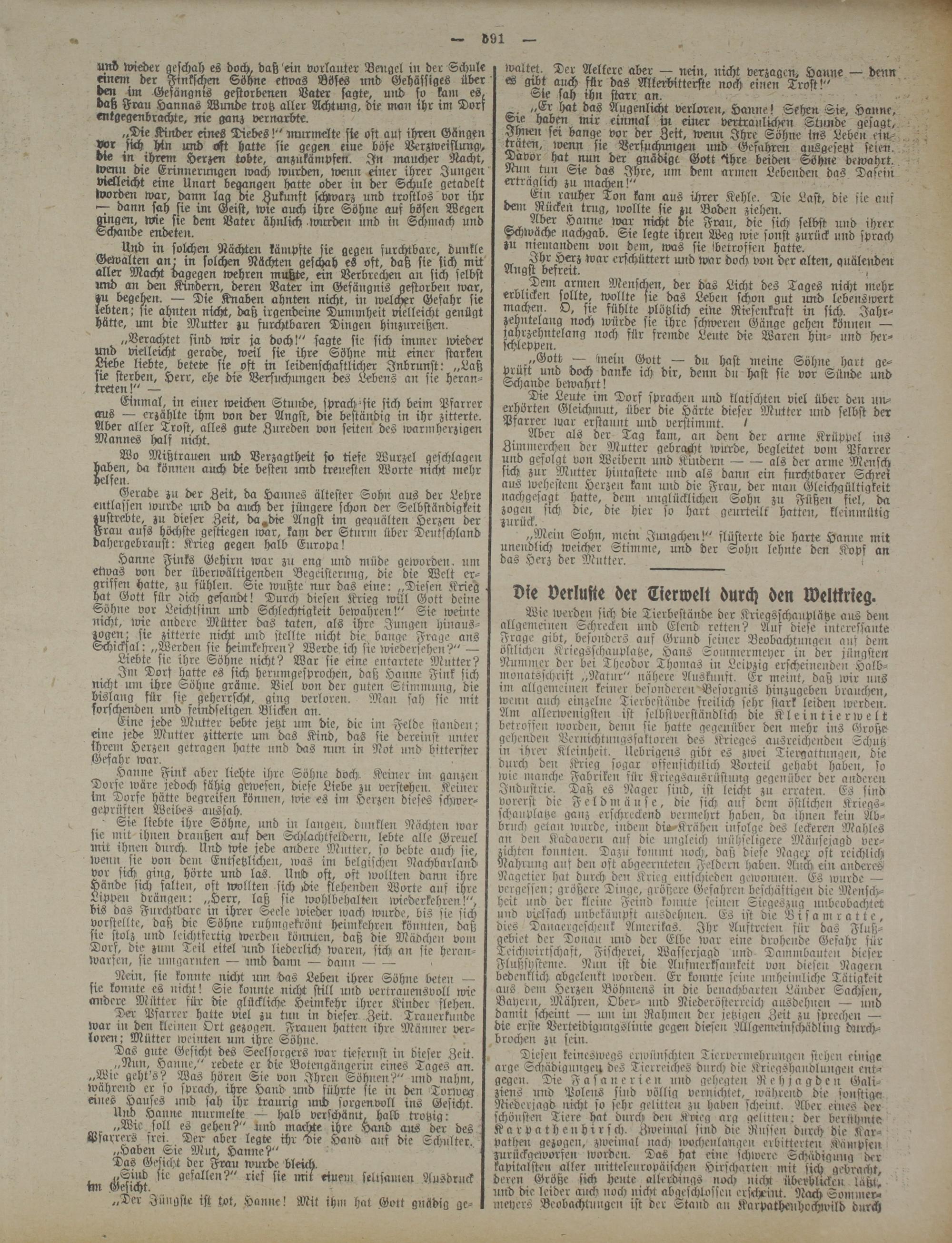 Die Verluste der Tierwelt durch den Weltkrieg.