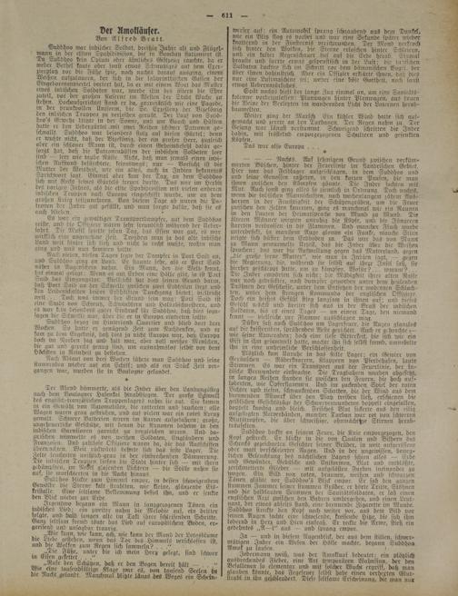 Jedermann lveiß, was der Amoklauf bedeutet: ein plötzlich ausbrechendes Fieber, eine Art temporären Wahnsinn, der den Befallenen so elementar und mit solck>er Muckst ergriff, daß man glauben könnte, das Fegefeuer selbst l)abe einen verhexten Glut strahl m ihn geschlendert. Diese seltsame Ersckwinnng. oie man nur