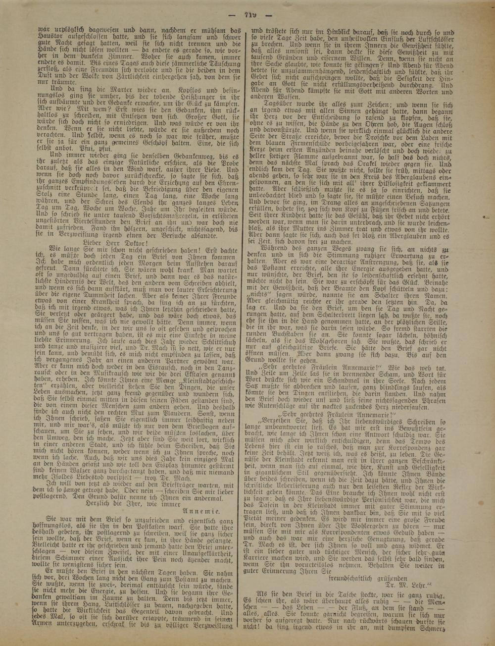 geehrtes Fräulein Annemarie!" Wie das weh tat. Und Zeile um Zeile las sie in brennender Scham, und Wort ftir Wort drückte sich wie ein Schandmal in ihre Seele. Nach jedem Satz mußte sie abbreckfen und laufen, ganz blindlings laufen, als konnte sie den Dingen entfliehen, die darin standen. Und nahnr - ir ne ' rV 3 ^ ^der uns und ließ seine nichtssagenden Phrasen wie Rutenschläge ans ihr nacktes zuckendes Herz niedersausen.