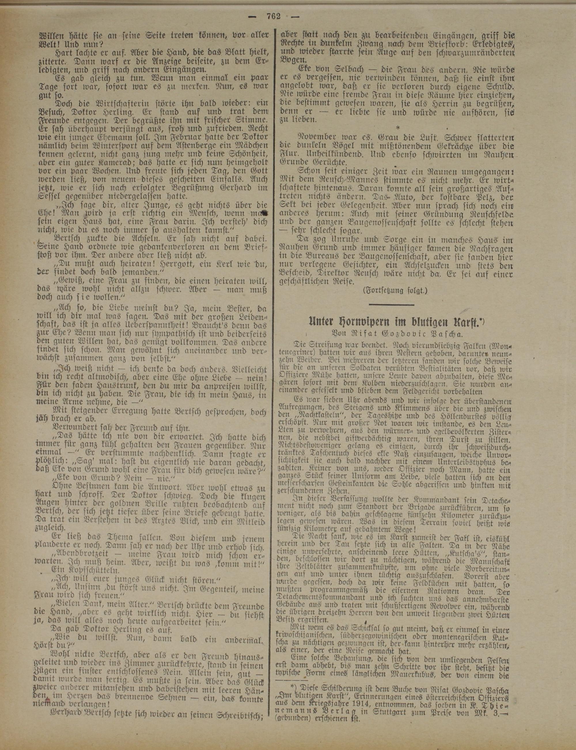 dem Buche von Risat Gozdovic Pascha blutigen Karst ^Erinnerungen eines österreichischen Offtziers ans dem KriegSiahre 1914, entnommen, das soeben in K. Thie- nemannS Verlag in Stuttgart zum Preise von Mk. 3 — (gebunden) erschienen ist.