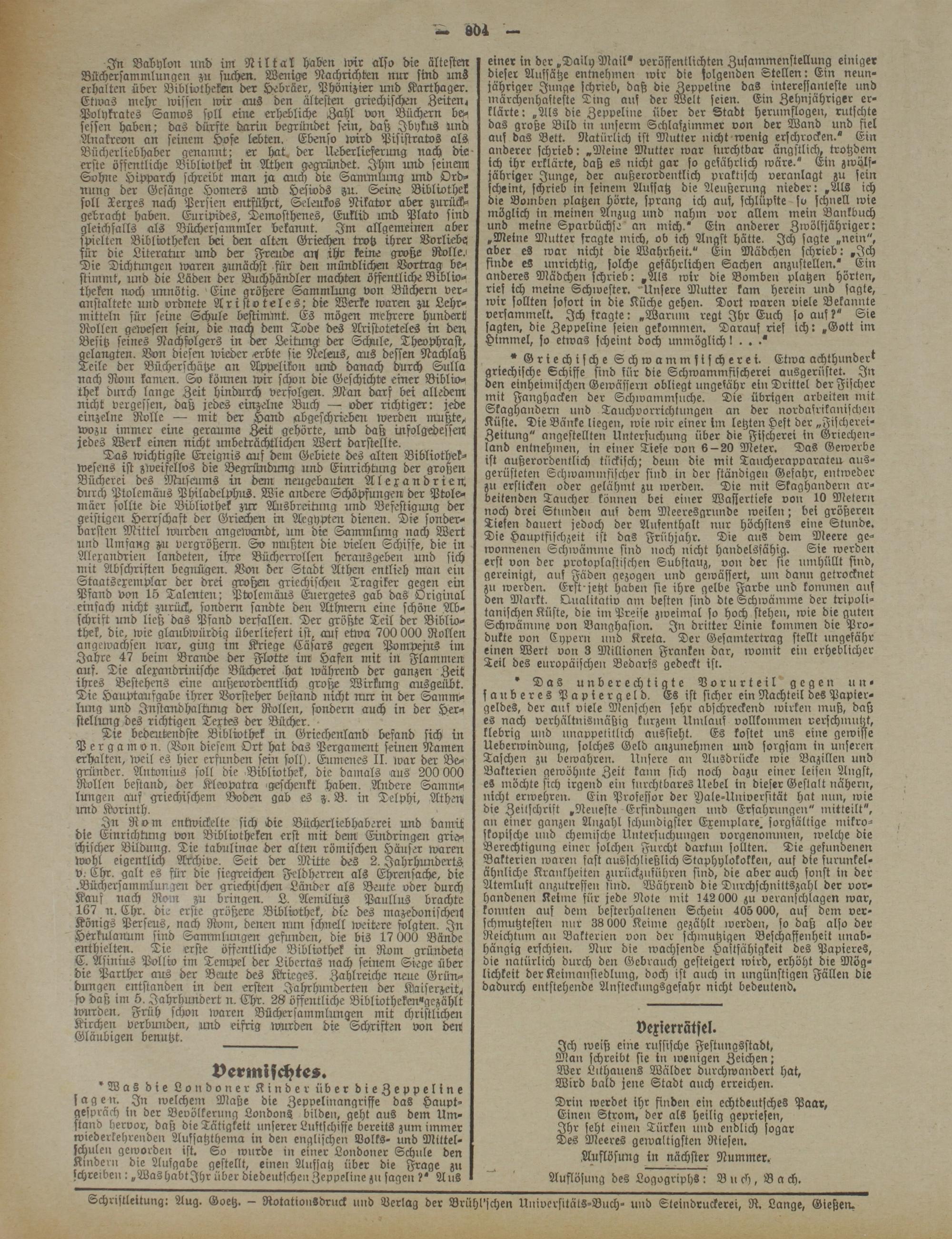Schristleitung: Aug. Goetz. — Rotationsdruck und Verlag der Brühl'schen UniversitätS-Buch- und Steindruckerei, R. Lange, Gießen.