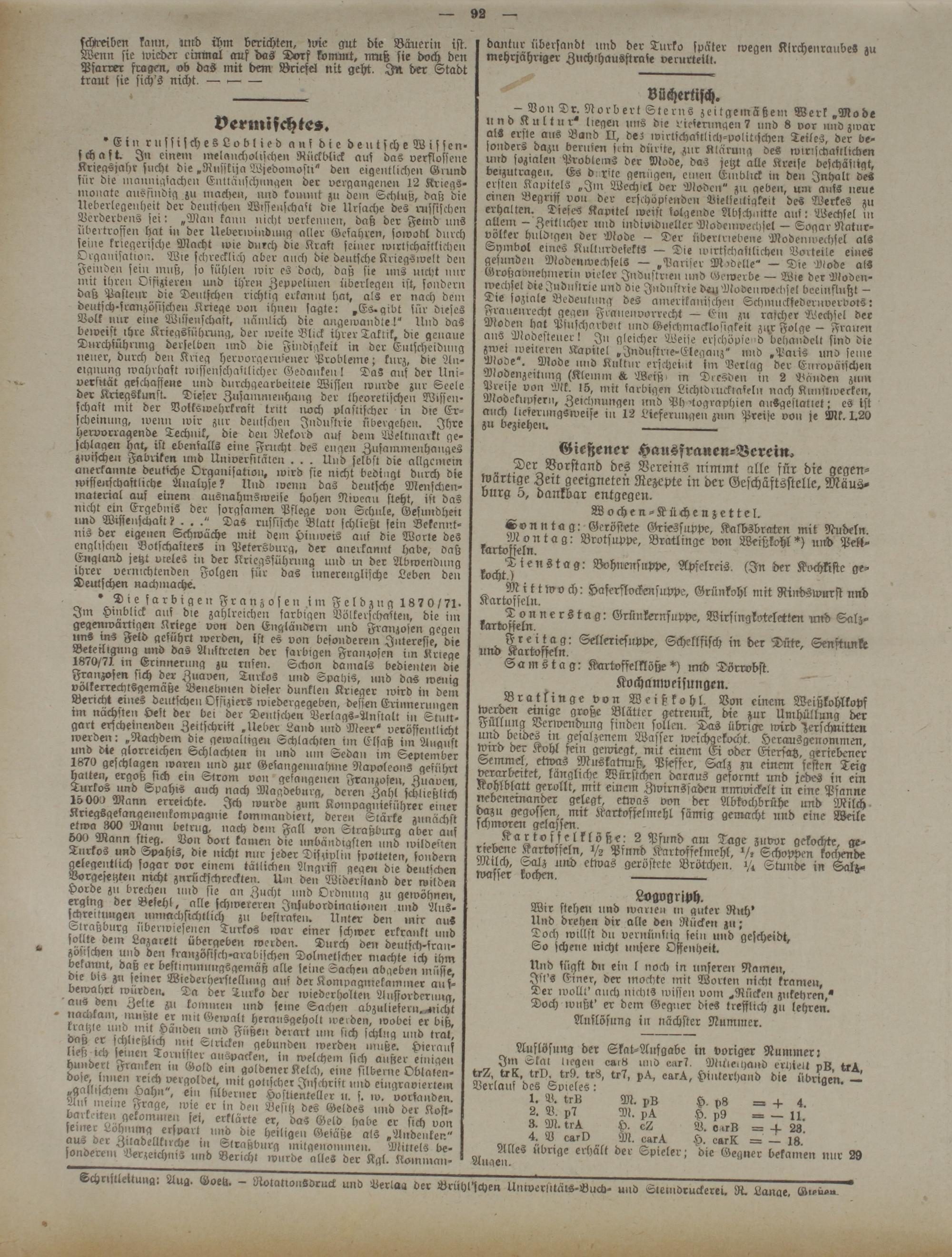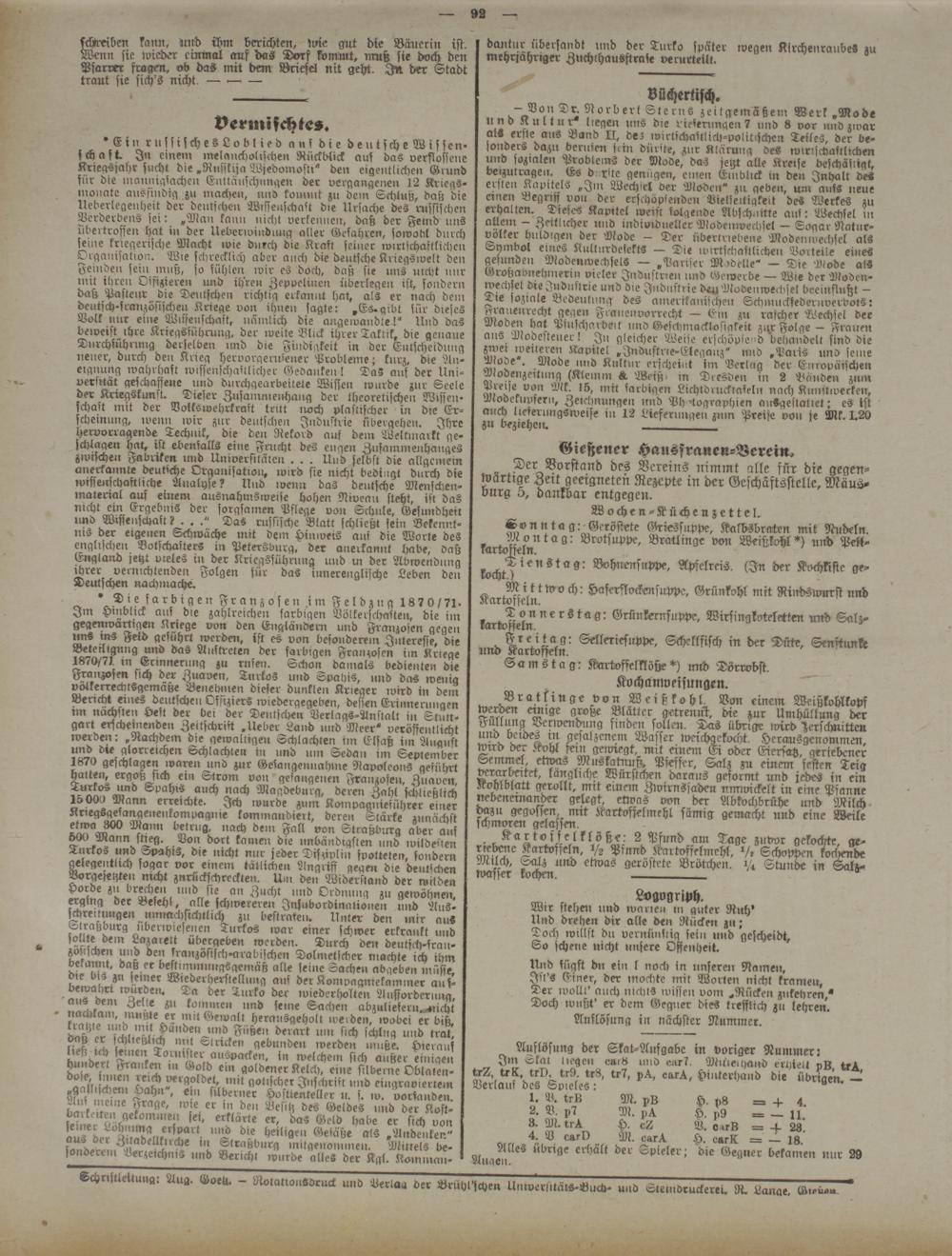 Doch mußt' er dem Gegner dies trefflich zu kehren. Auslösung in nächster Nummer.