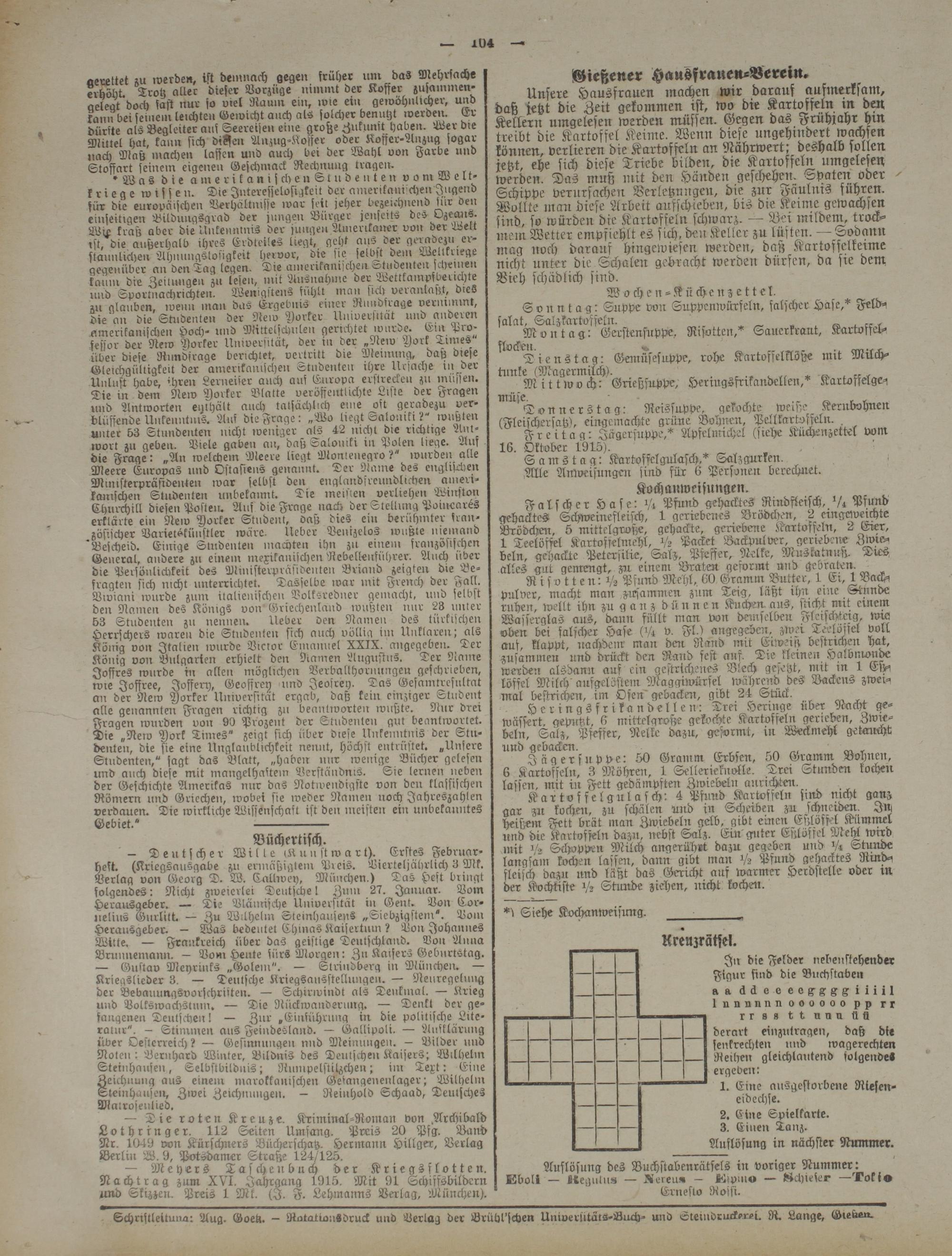 Auflösung des Buchstabenrätsels in voriger Nummer: Eboli — ttegnln« — JNereua — Eipm« — fikljiefcr — Toffo Erneslo Rosst.
