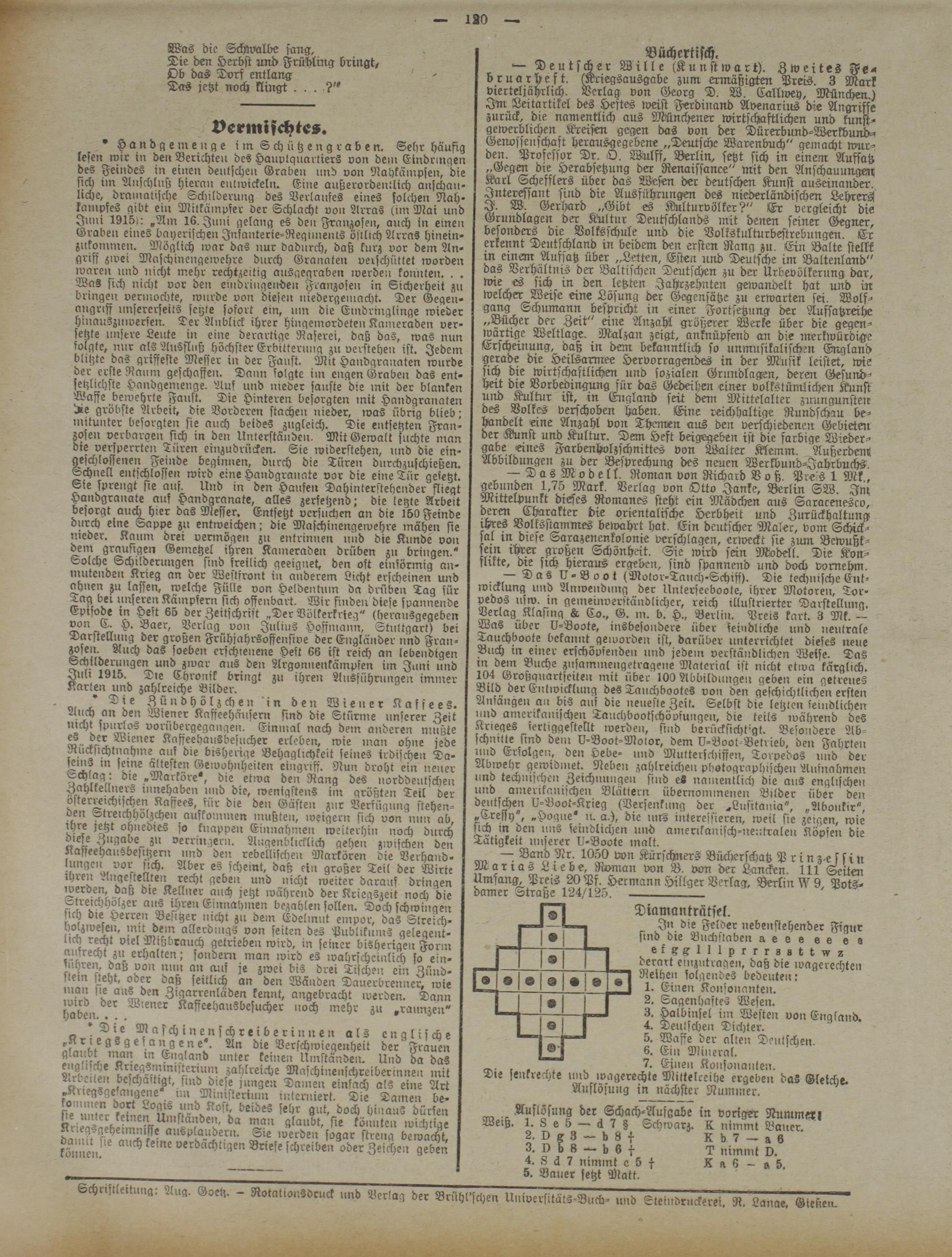 — Deutscher Wille (Kunstwart). Zweites Fe- bruarheft. (Kriegsausgabe zum ennäßigten Preis. 3 Mark vierteljährlich. Verlag von Georg D. W. Callwey, München.)