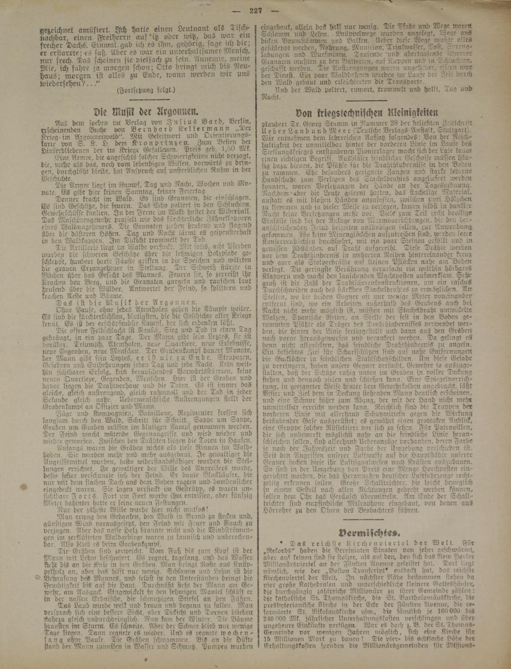 Aus dem weben im Verlag von Julius B a r d, Berlin, erscheinenden Buche von Bernhard Keller mann „Der Krieg, im Argounerwajld". Mit Geleitwort und Orieutierungs- tarte von S. K. H. dem Kronprinzen. Znm Besten der Hinterbliebenen der im Kriege Gefalleinen. Preis geb. I,o0 Mk.