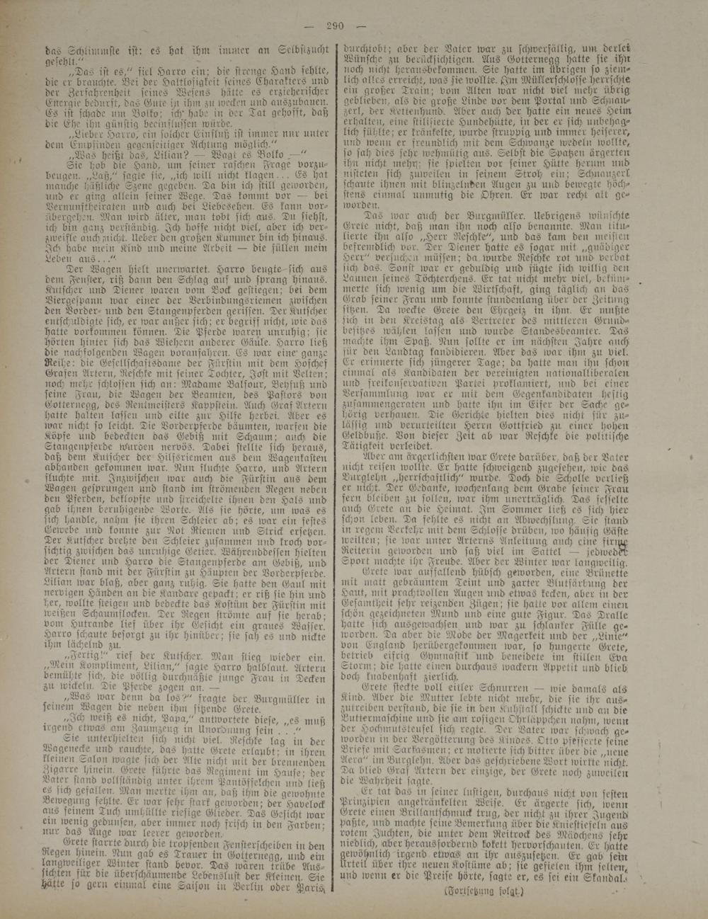 Grete steckte voll eitler Schnurren — wie damals als Kiiid. Aber die Mutter lebte nicht inehr, die sie ihr aus- zntreiben verstand, die sie in den Knhstall schickte und an die Buttermaschine und sie am rosigeil Ohrläppchen nahw, wenn der Hochmutsteufel sich regte. Der Vater war schwach geworden in der Vergötterung des Kindes. Otto pfefferte seine Briese mit Sarkasmen; er mokierte sich bitter über die „neue Aera" im Burglehn. Aber das geschriebene Wort wirkte nicht. Da blieb Gras Artern der einzige, der Grete noch zuweilen die Wahrheit sagte.