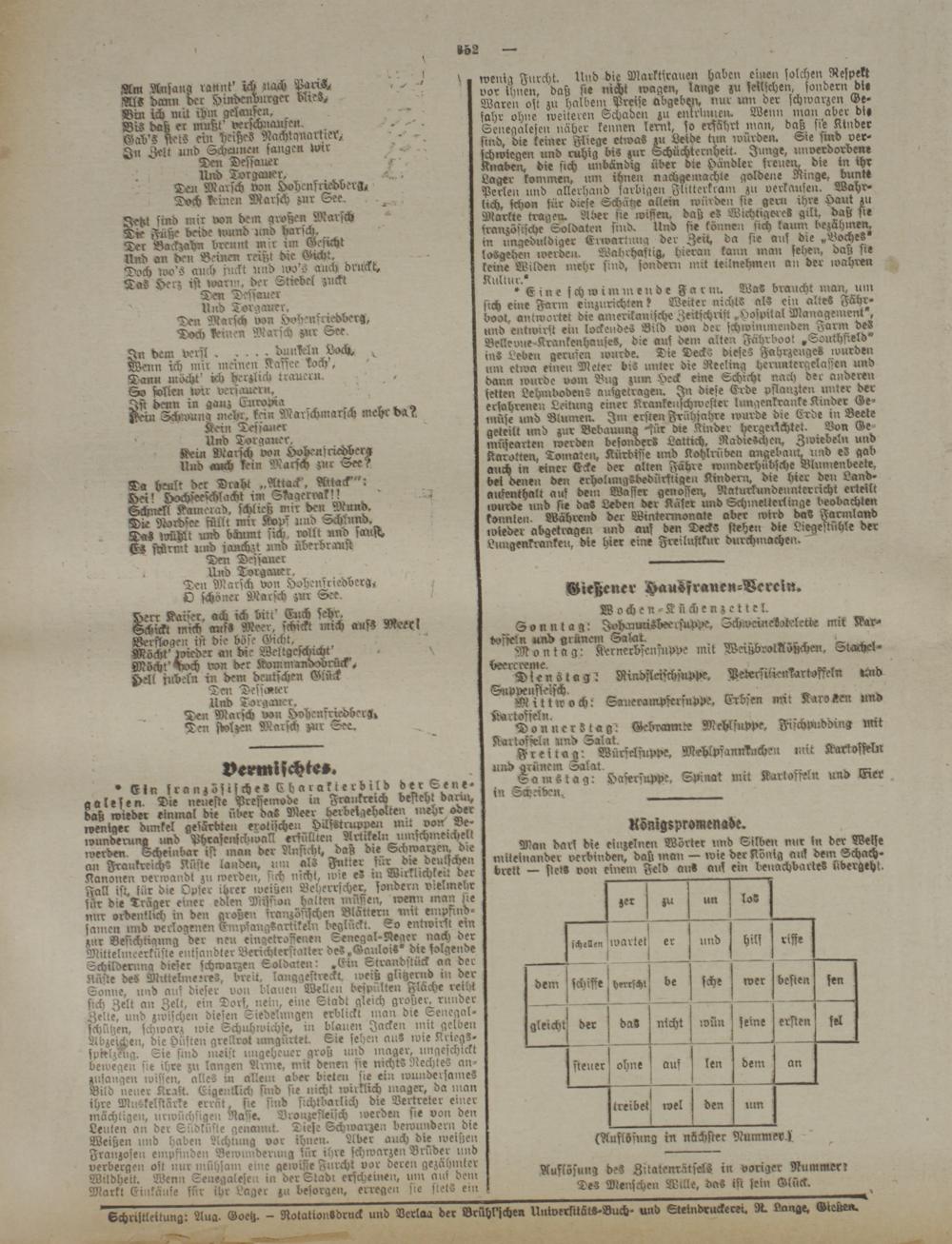 Auflösung des ZitatenrätsÄs in voriger Nummerr Des Menschen Wille, da« ist sein Glück.