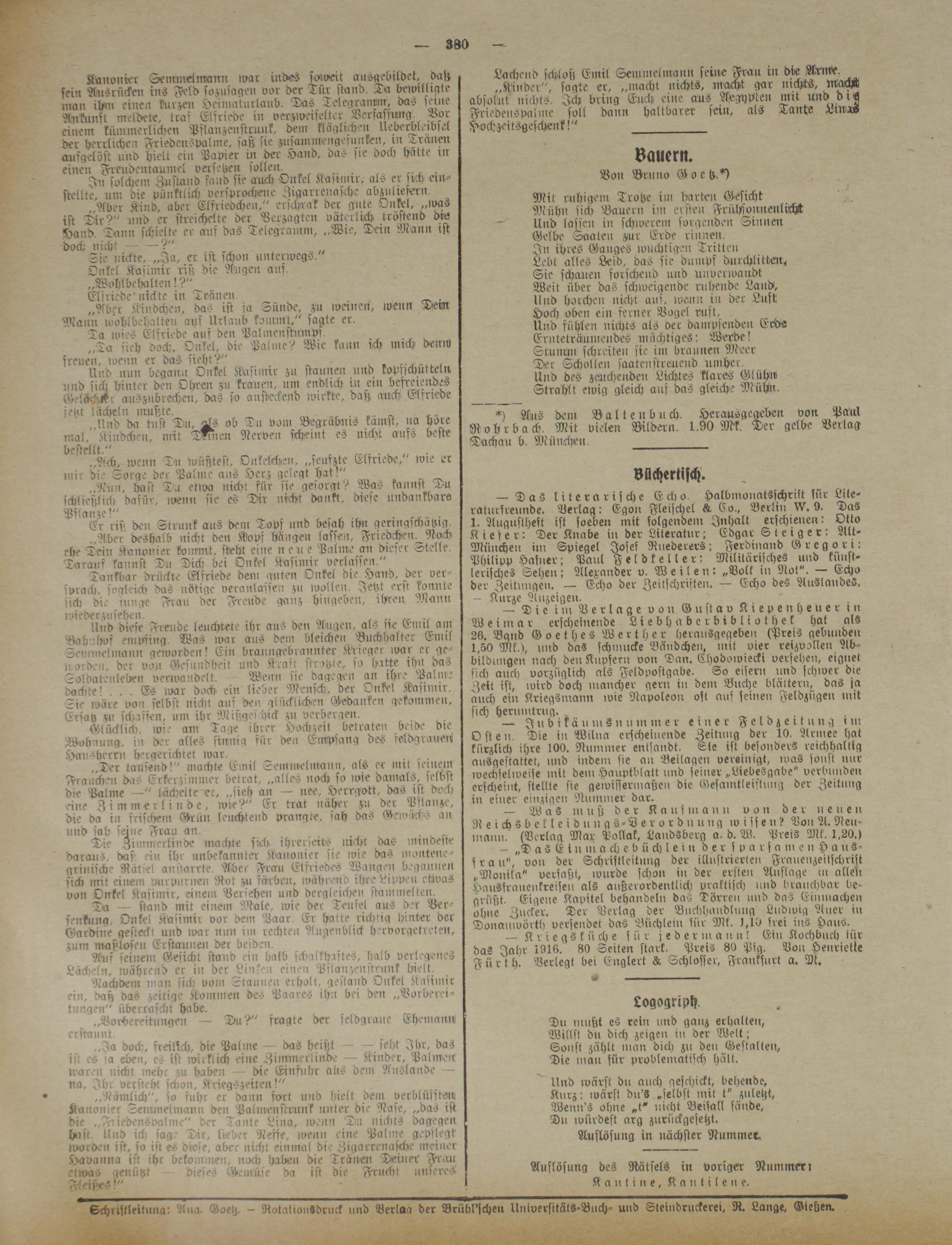 Schristleitung: Aug. Goetz. - RotaliouSdruck und Verlaa der