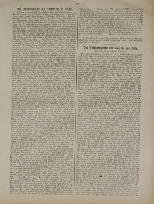 wenigstens bu vielen Fruchten, auch eine gute Obsternte, ober so Und wir nicht gestellt, daß wir rislleren könnten, viel sit t>er- berben. — Natürlich müssen wir für den Winter Vorsorgen, aber das können wir Mir, wenn wir denjenigen die Konseroierung uberlassen, die dazu tn erster Linie befähigt siird. das sind vor allem ^s^^Egerichteten Fabriken. Jbnen Rohstoffe ziiznMhren, muß unsei Hmiptzrel sein, damit unsere prachtvollen Triippen an der bannt unsere in der Heimat mit dem'uns Hungersnot wünschenden Femd känipfende Bevölkerung im Winter und Fänh- tabr genug zu essen hat. Es ist daher auch gar-nicht zu verstehen M ^ 7 vielen Zusendungen und Zeitungsartikeln die ?lukäufe ber ^uservenfäbriken getadelt werden. Selbst rvenn sie Gemüse und Obst dem imfif.marft entziehen, müssen die Bestrebungeu der Fabrcken nnterstutzt werden. „Spare in der Zeit.-so hast du in der ^ altes, wahres Wort. Und immer muß man sich wieder