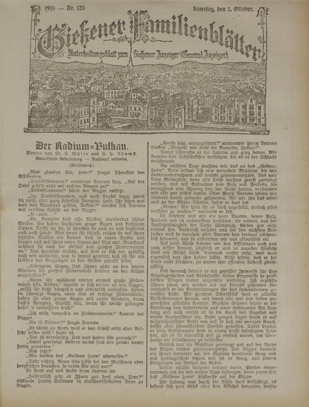 „Ucbrigens, Eugen, sind Ihnen nicht an den letzten Menden die großen Fledermäuse drüben an der Klippe aufgefallen?"