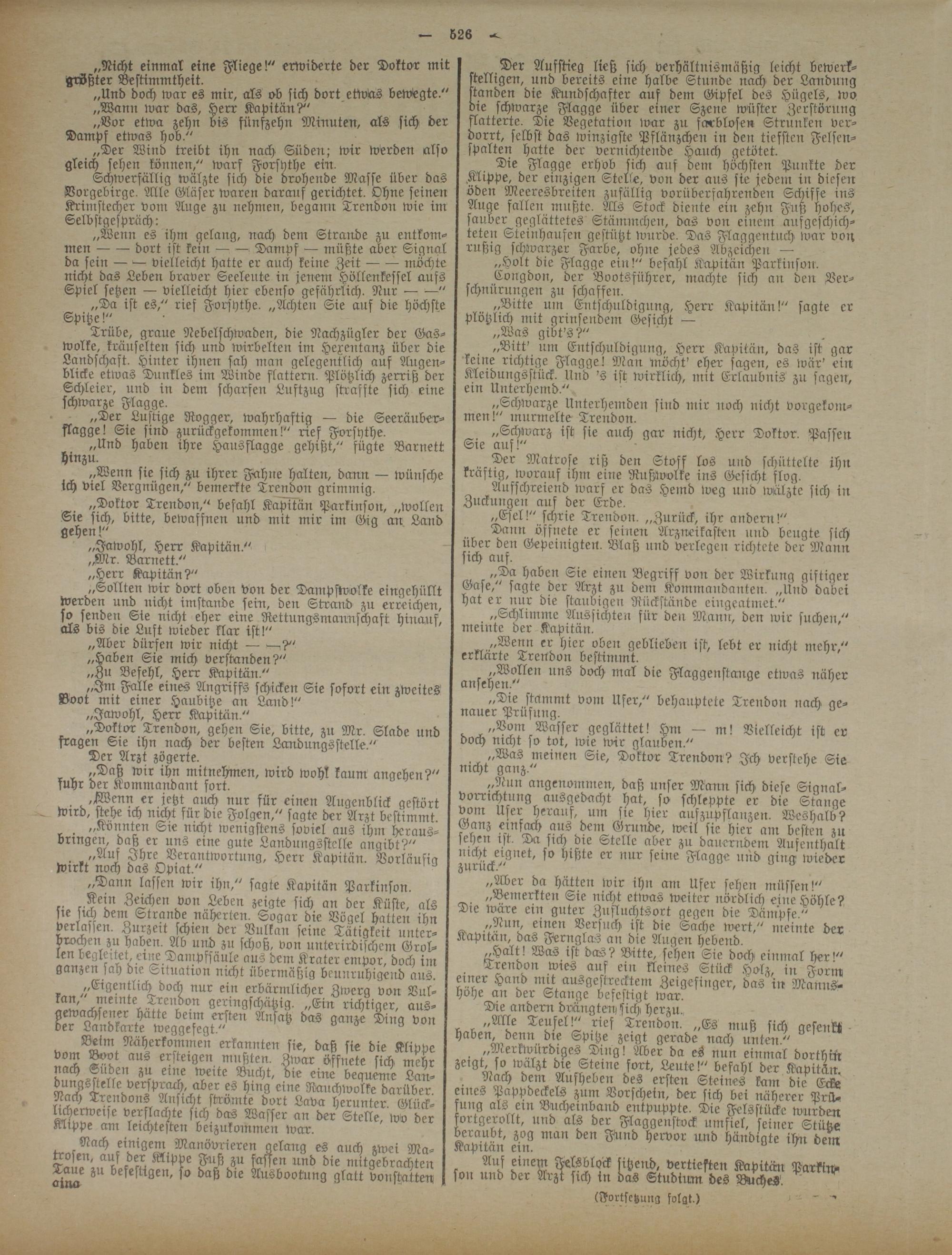 „Sollten wir dort oben von der Dampfwolke eingehüllt werden und nicht imstande sein, den Strand zu erreichen, so senden Sie nicht eher eine Rettungsmannschaft hinauf, als bis die Lust wieder klar ist!"
