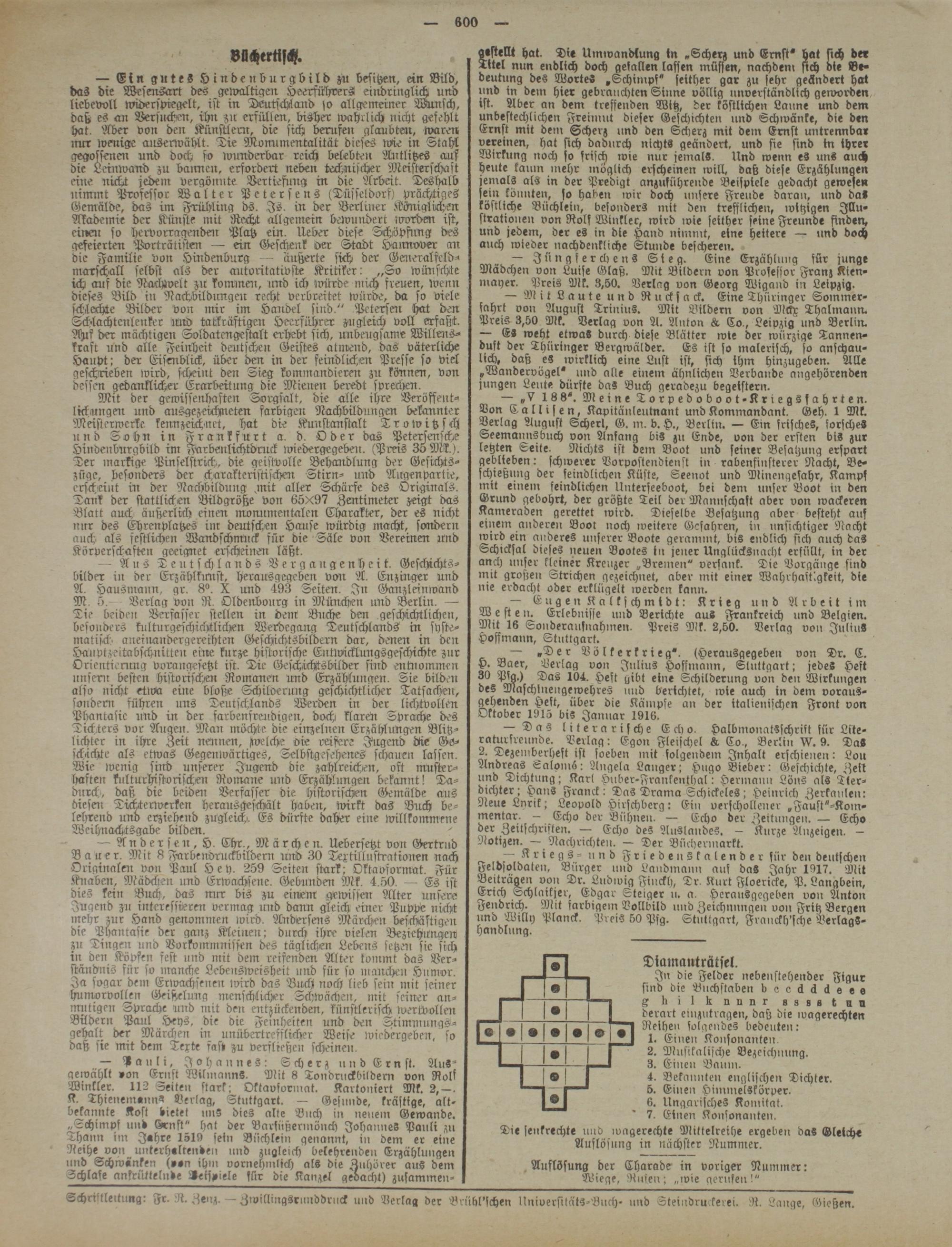 Schrlltleltung: Fr. R. Zenz. Zwillingsrunddruck und Verlag der Brühl'schen UniversitätS-Buch- und Steindruckerei. R. Lange, Gießen.