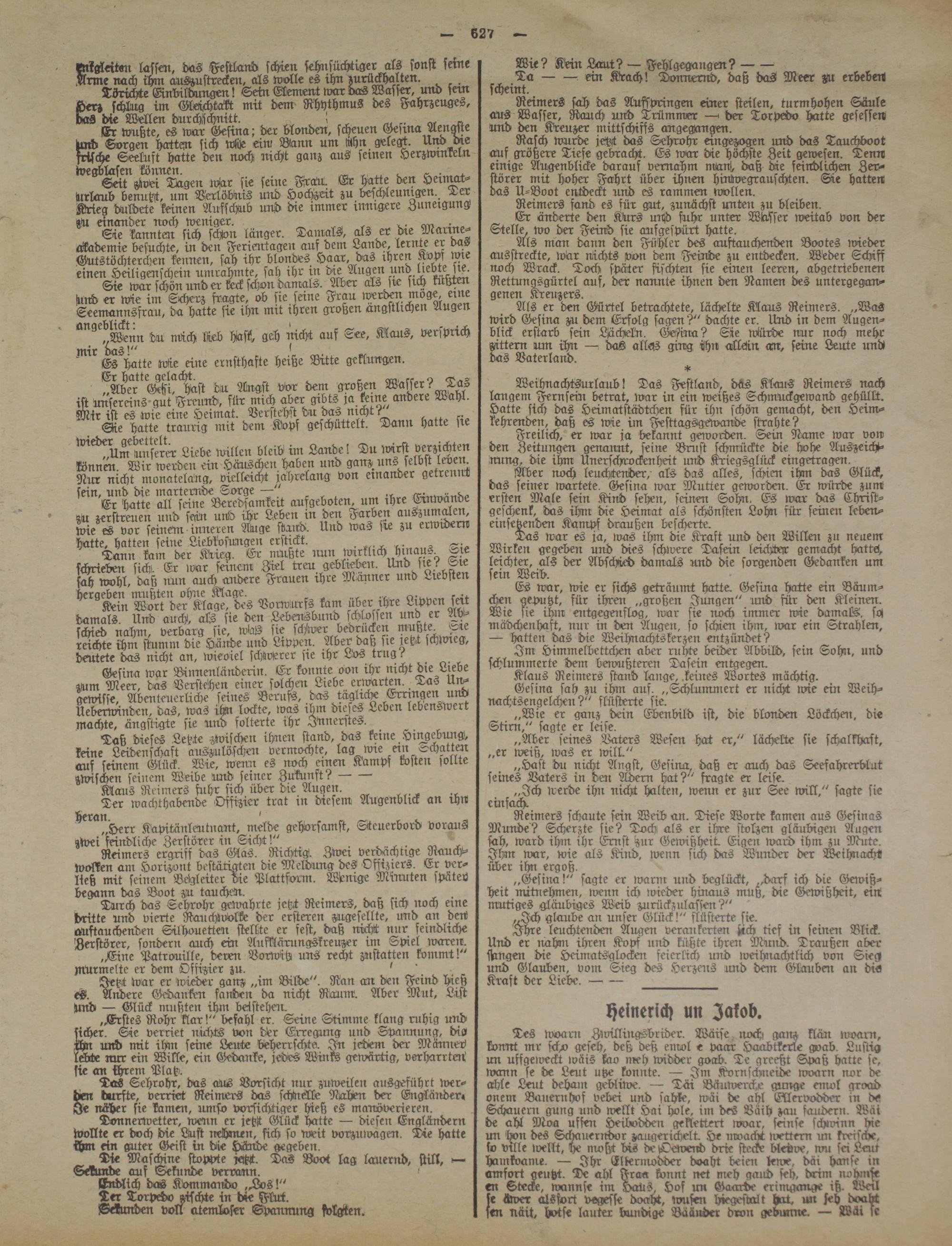 Gesina war B-mnenländerin. Er konnte von ihr nicht die Liebe zum Meer, das Verstehen einer solchen Liebe erwarten. Das Ungewisse, Abenteuerliche seines Berufs, das tägliche Erringen,und Ueberwinden, das, was ihn lockte, was ibm dieses Leben lebenswert machte, ängstigte sie und folterte ihr JUnerites.