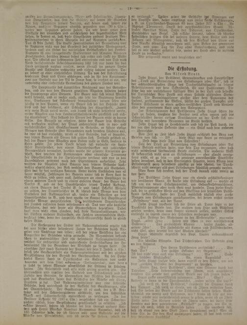 Seit der Trust zrcr Verwertung von Erfindungen jeder Art seinen Betrieb eröffnet hatte, war kein Tag vergangen, ohne daß nicht mindestens fünftausend Briefe einliesen. Tie mooernc Welt ist bekanntlich nickst arm an Erfindungen — oder glaubt roenig- stens nicht, es zu sein — und gewiegte amerikanische Stattstiker haben berechnet, daß in den Vereinigten Staaten, deren Klima dem Erfindergeist ganz besonders günstig zu sein scheint, im Durchschnitt nicht weniger als! zwei Erfindungen stündlich gemacht lverden.