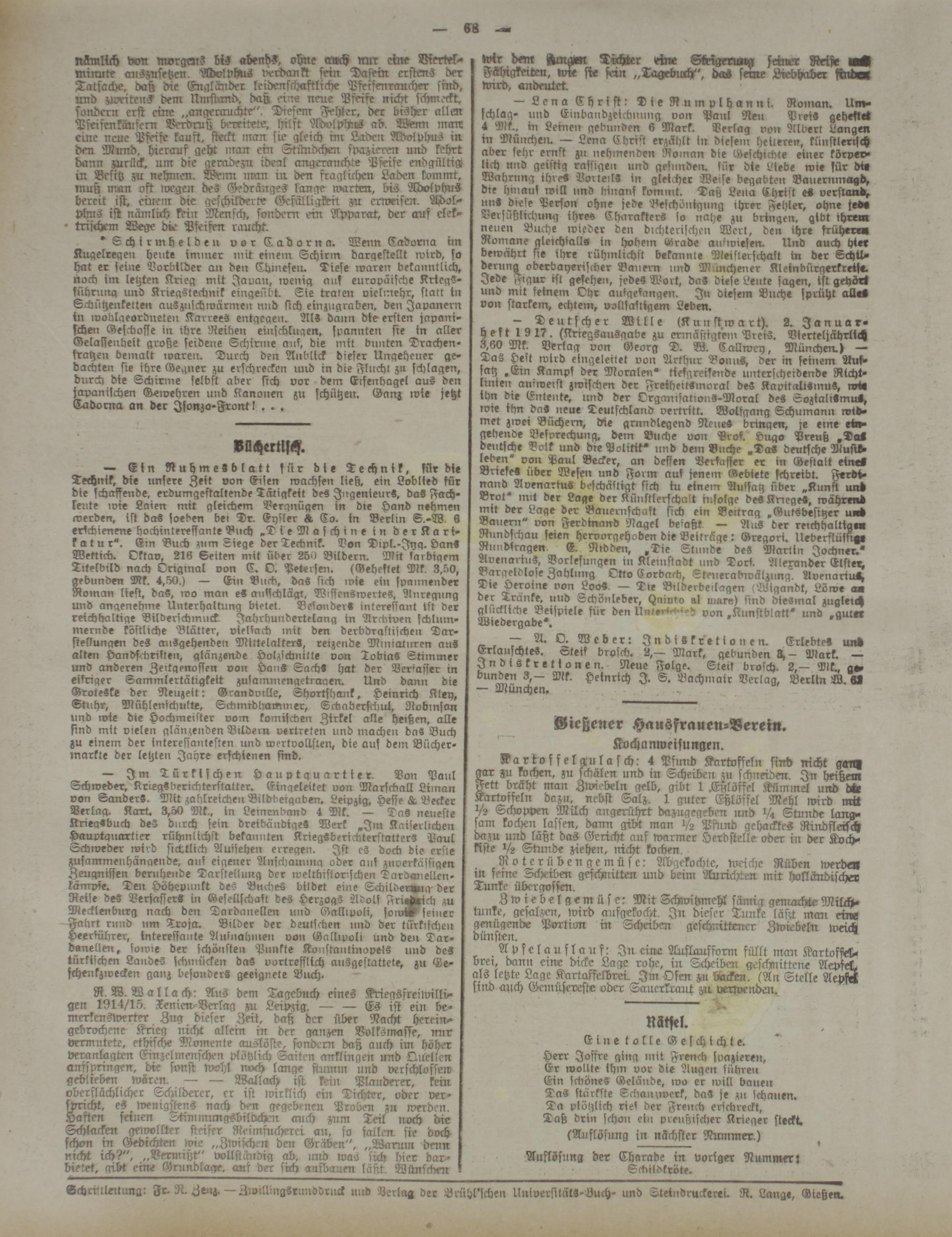 Schrinleitung: Fr. R. Zenz.-Zwillmgsrunddruck und Verlag der Brühl'scben UniversitätS-Buch- und Stetndruckerei. R. Lange, Gießen.