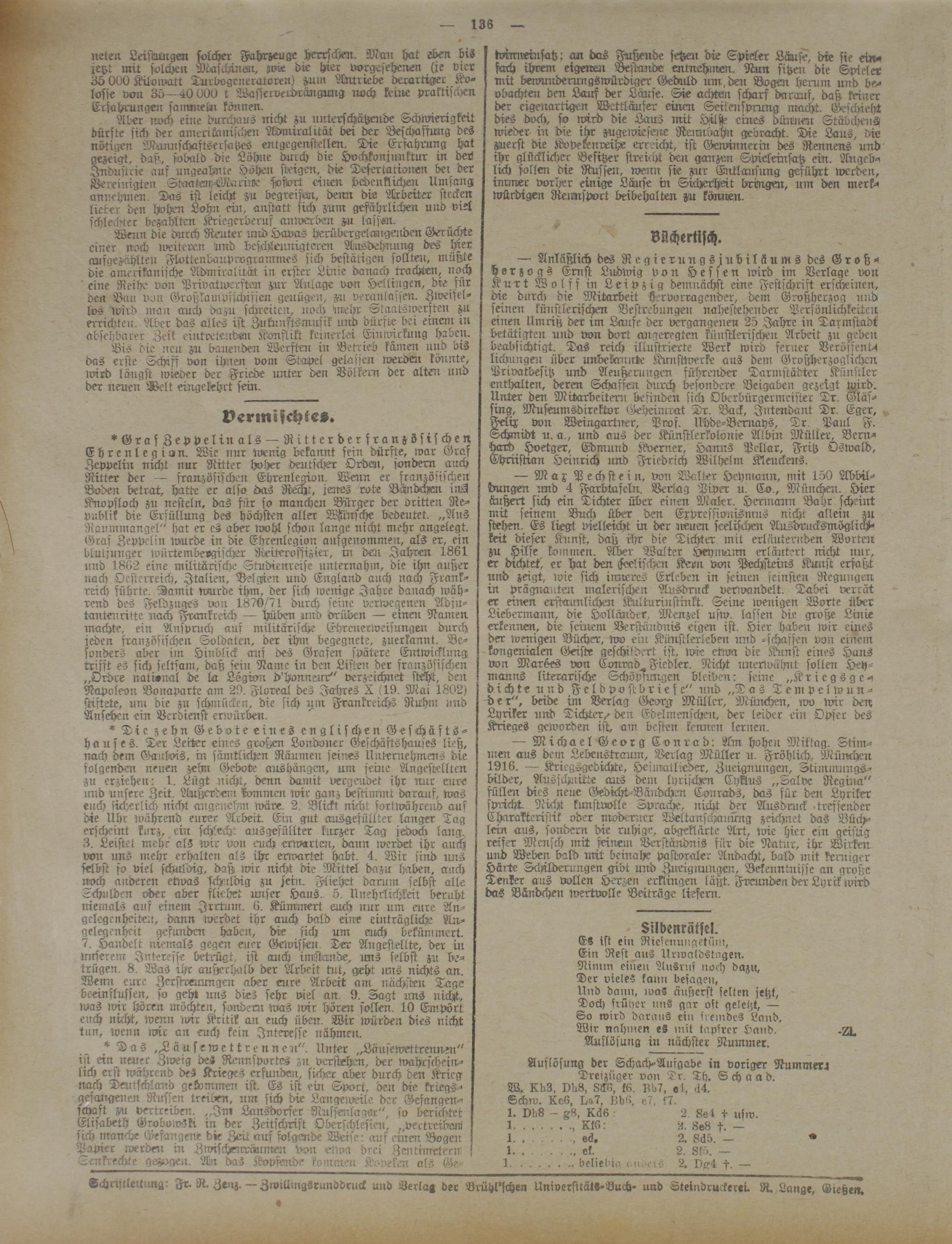 Schnsllettung: Fr. R. Zenz. — Zwillingsrunddruck und Verlag der Brühl'schen UniversitätS-Buch- und Steindruckerei. R. Lange, Gießen.